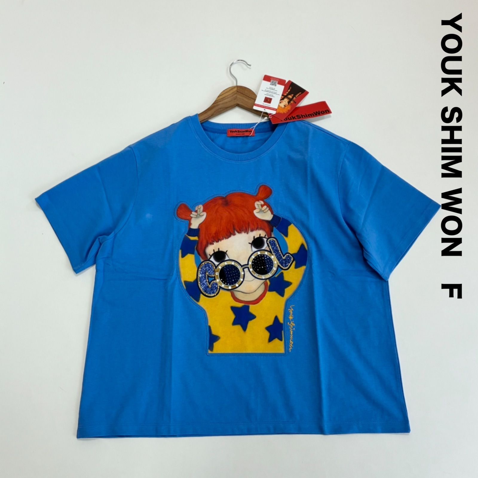 新品 YOUK SHIM WON ユクシムウォン 半袖Tシャツ F ブルー COOL メガネガール オーバーサイズ