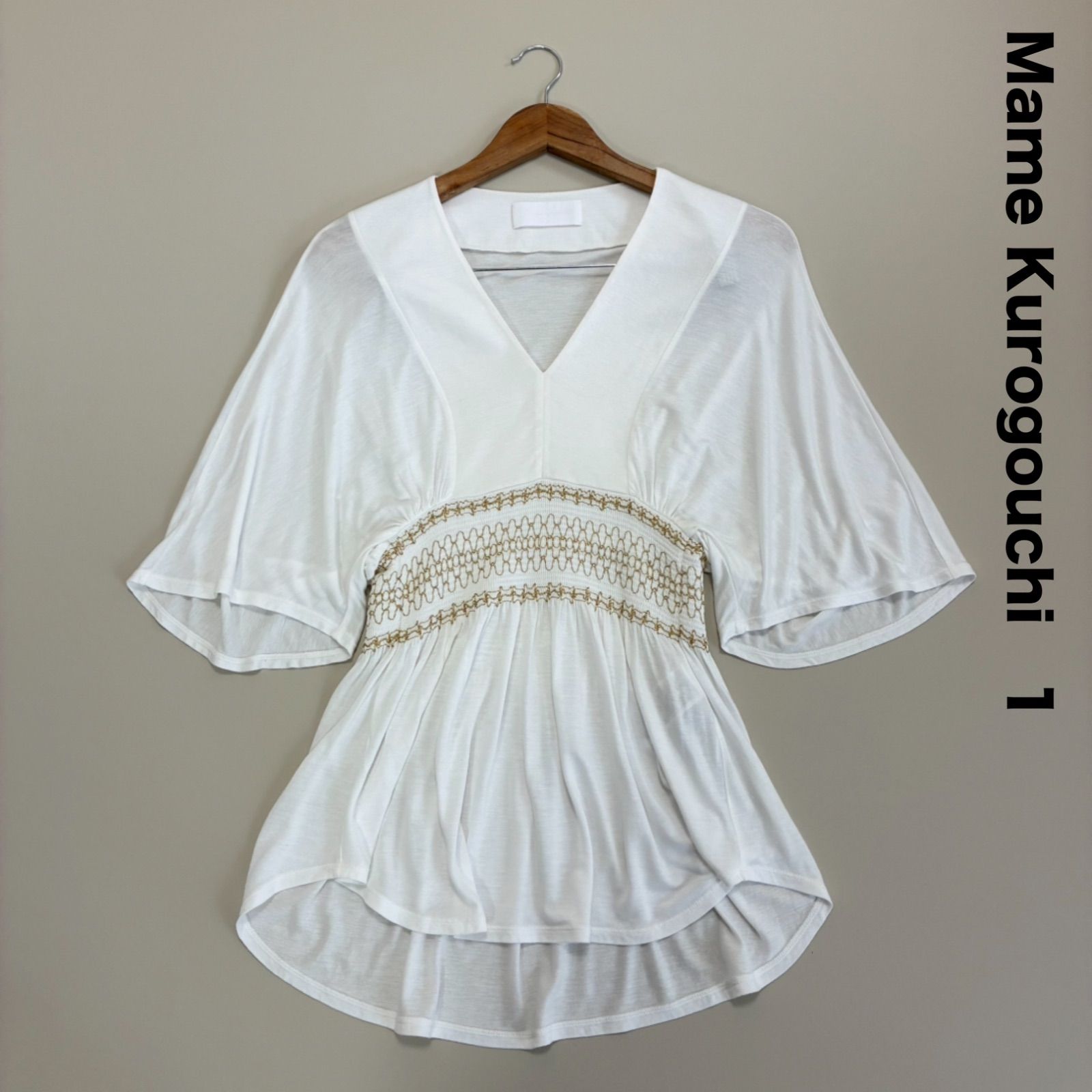 Mame Kurogouchi マメクロゴウチ Vネックチュニック プルオーバー スモッキング ボヘミアン