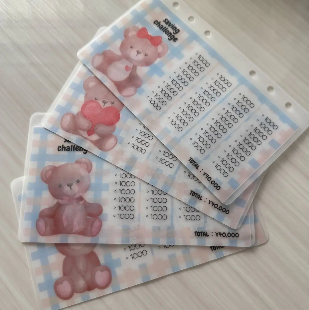 Savingリフィル4枚♡テディベア チェック柄 バインダー貯金