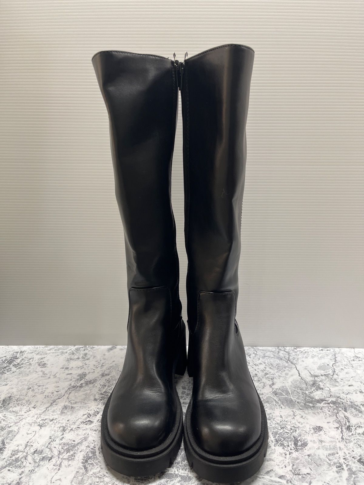 送料無料!!ZARA ザラ レディースブーツ ロングブーツ レザー調厚底ブーツ 7cm厚底ブーツ 内側ファスナー ブラック サイズ38(24〜24.5cm) #80420MO201