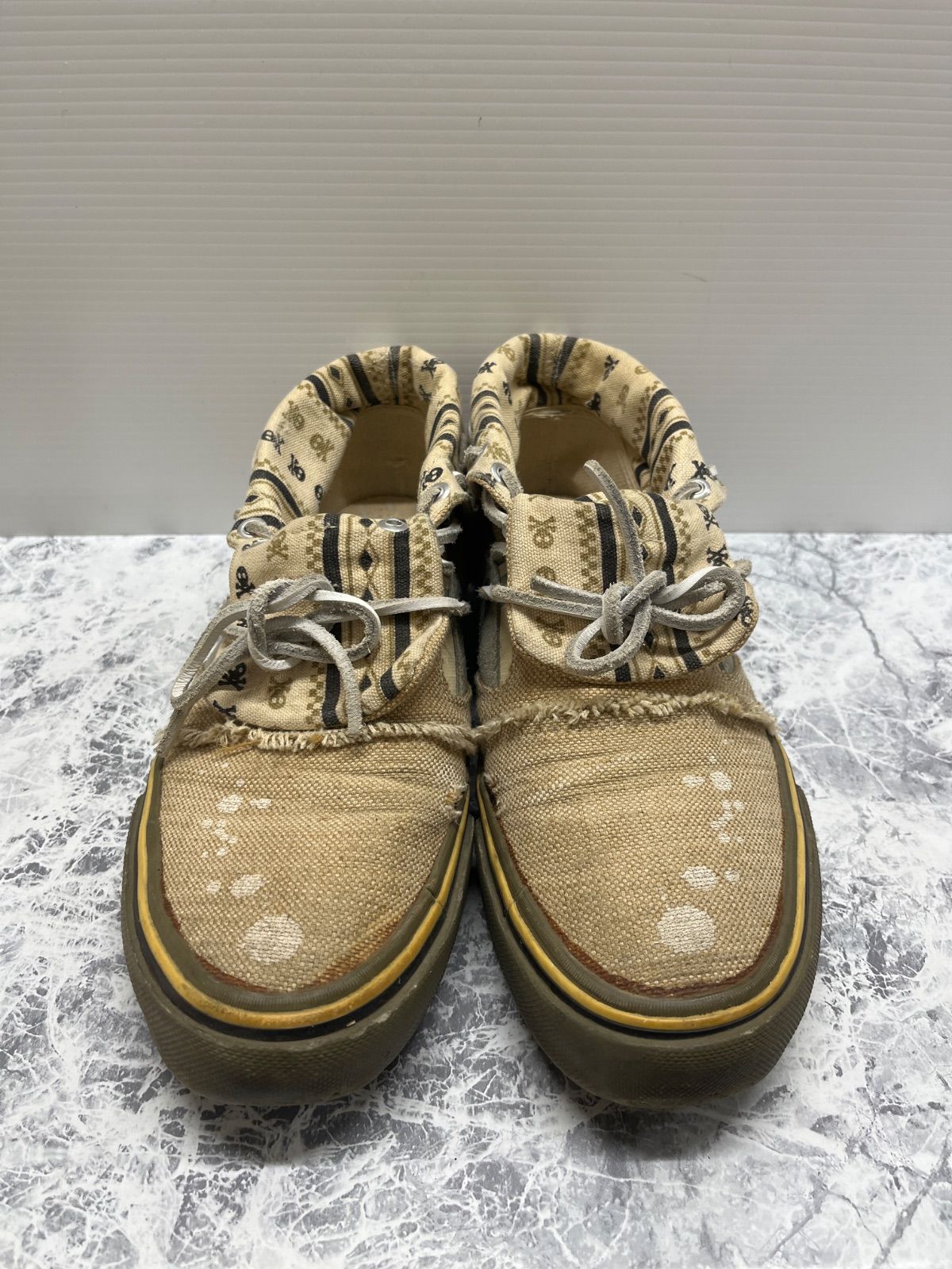 送料無料!!INDIANSHOES インディアンシューズ メンズスニーカー コットンリネンスニーカー 革紐スニーカー スカル柄ベージュ系 25.5cm #80420MO201