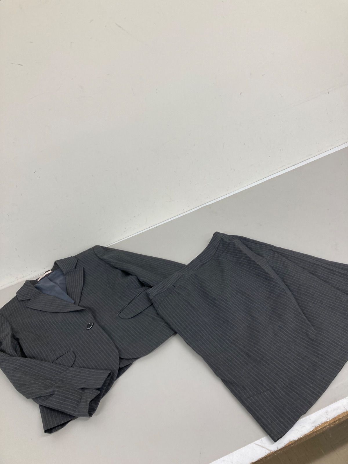 送料無料★LES MUES レスミュー★スカートスーツ 上下セット ストライプスーツ セットアップ★レディース SS-M グレー #80421sj96