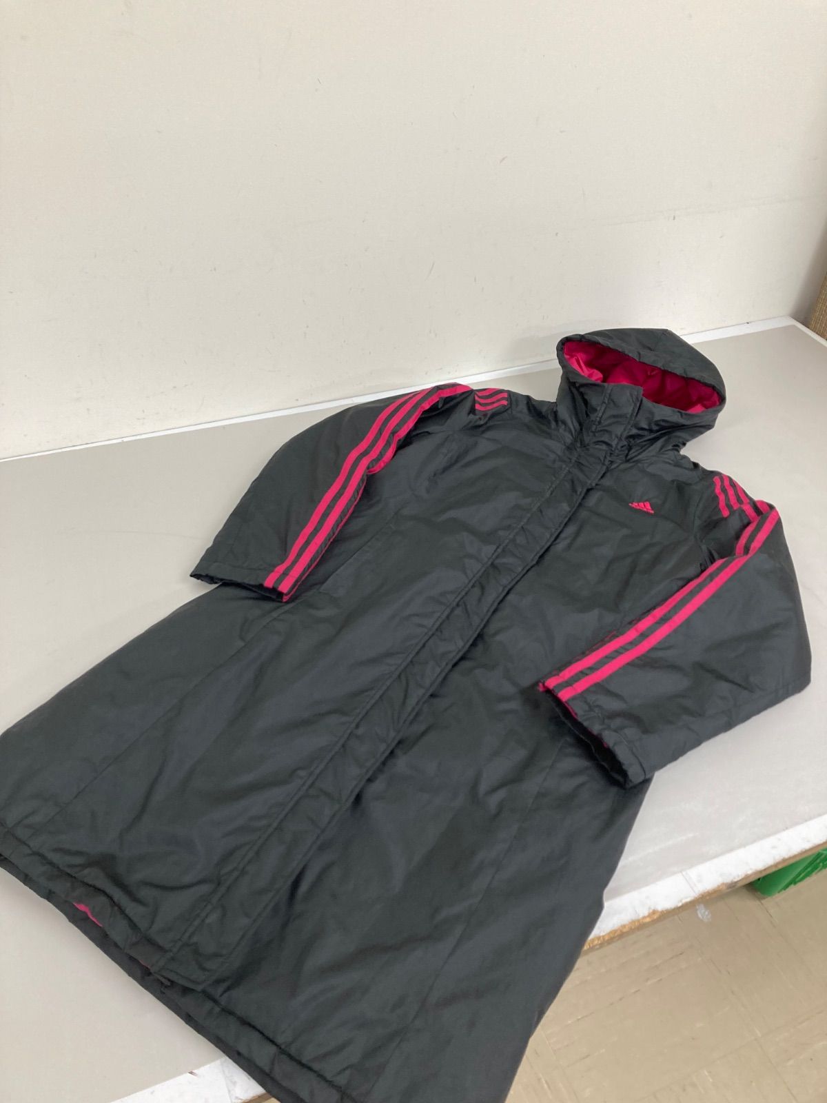 送料無料★adidas climastorm アディダス★ベンチコート 中綿ロングジャケット スポーツコート★黒ピンク ブラック★レディース Lサイズ #80421sgr3