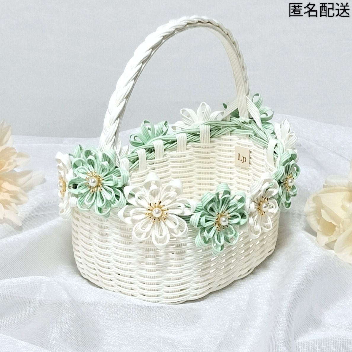 【Fleur -Medium (M) ホワイト】フラワーシャワーかご|フラワーガール バスケット|結婚式 リングピローかご|ウェディング フラワーバスケット|手編み