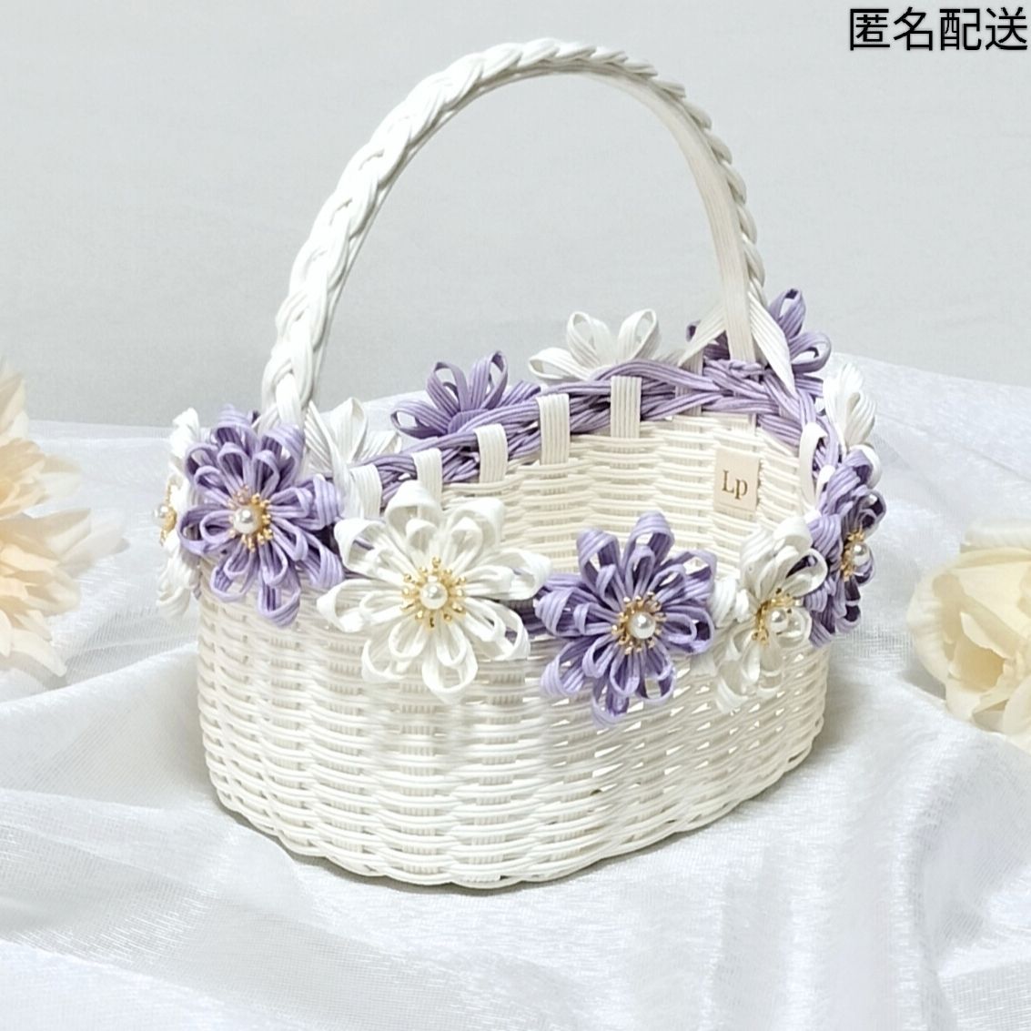 【Fleur -Petit (S) パステルパープル】フラワーガール バスケット|リングピローかご|フラワーシャワーかご|結婚式 フラワーバスケット|手編み