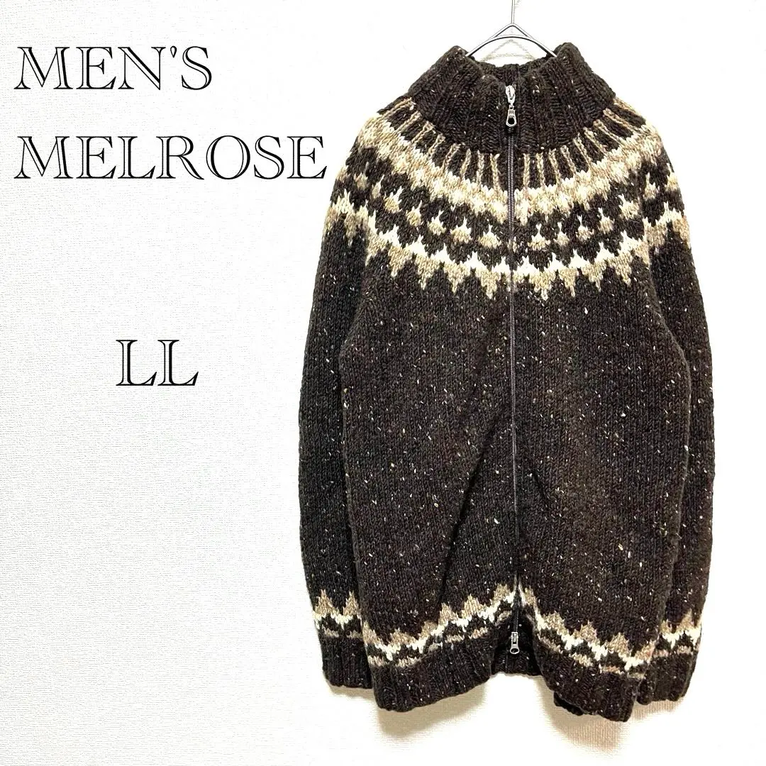 MEN'S MELROSE 総柄ニットパーカー 【LL】フルジップ 厚手 冬