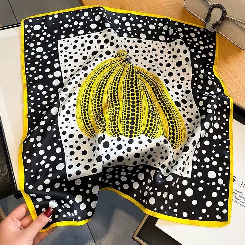 草間彌生 かぼちゃ ドット柄大判シルク100%スカーフ 12匁絹バンダナハンカチ 上品高級感