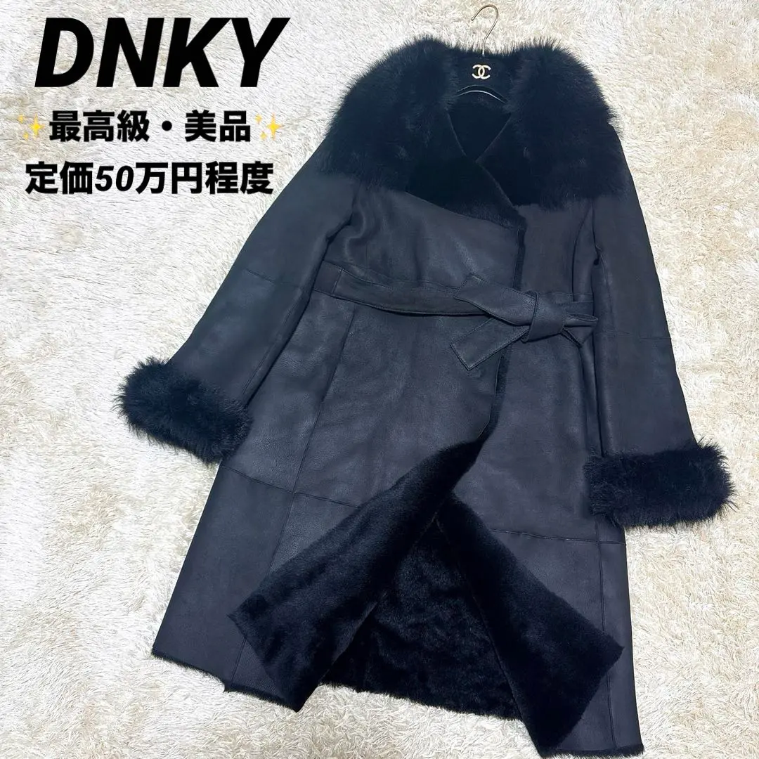 最高級・美品✨DNKY ダナキャランニューヨーク リアルムートンコート ベルト付