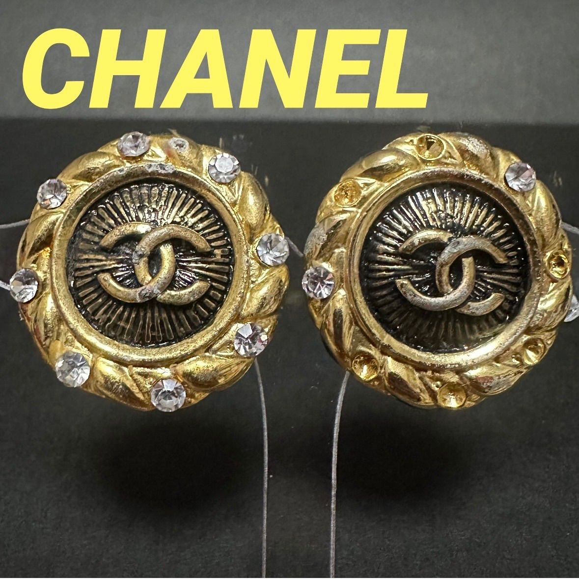 シャネル CHANEL イヤリング ココマーク ストーン ヴィンテージ 大人気 定番 希少 GP ラインストーン ゴールド ブラック