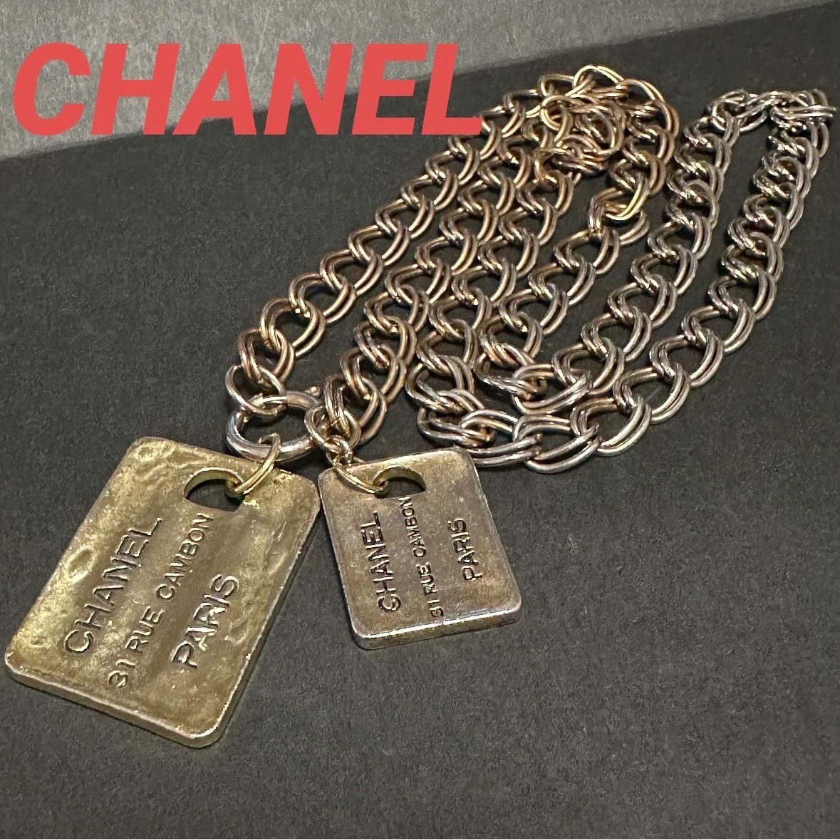 シャネル CHANEL ネックレス カンボンプレート カンボンライン ヴィンテージ ロングネックレス 希少 大人気 メッキ ゴールド