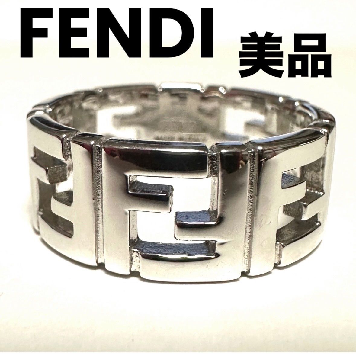 美品 フェンディ FENDI 指輪 リング FF FFロゴ FFモチーフ パラジウム ブラス IT4023 ブラス メタル シルバー
