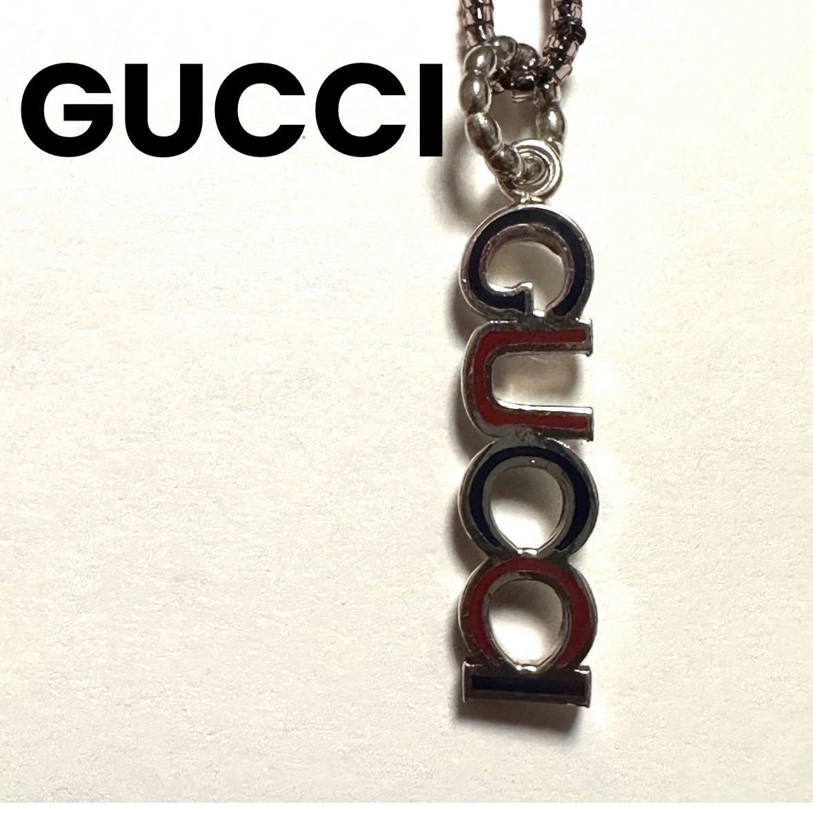 グッチ GUCCI ネックレス ロゴ ヴィンテージ Ag925 10KT シルバー グリーン レッド ユニセックス レディース メンズ