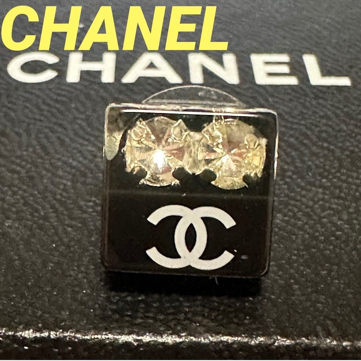 シャネル CHANEL ピアス ココマーク ヴィンテージ 大人気 希少 四角 四角形 ラインストーン ブラック