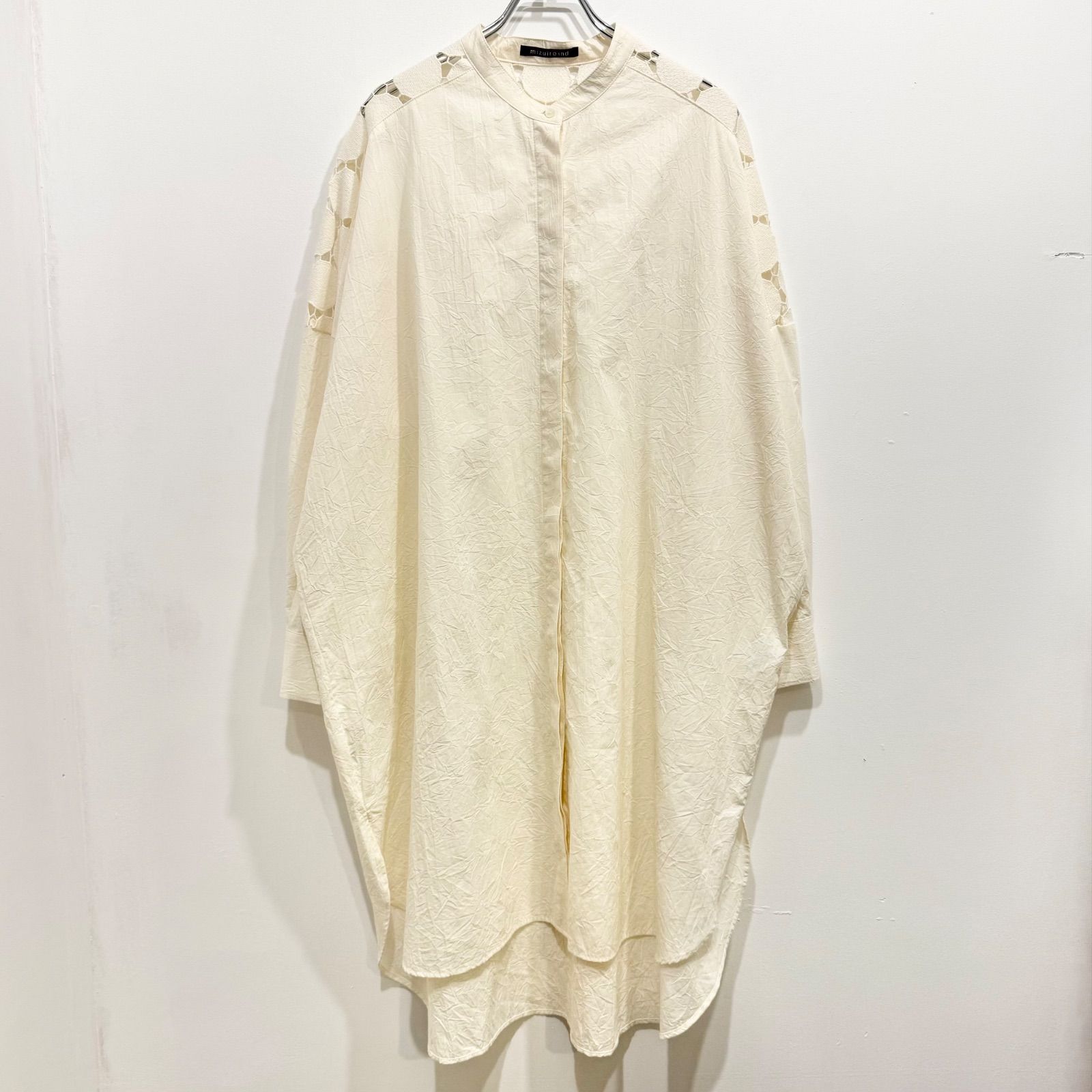 mizuiroind ミズイロインド レースミックススタンドカラーシャツワンピース 日本製 オフホワイト クリーム【送料込み】