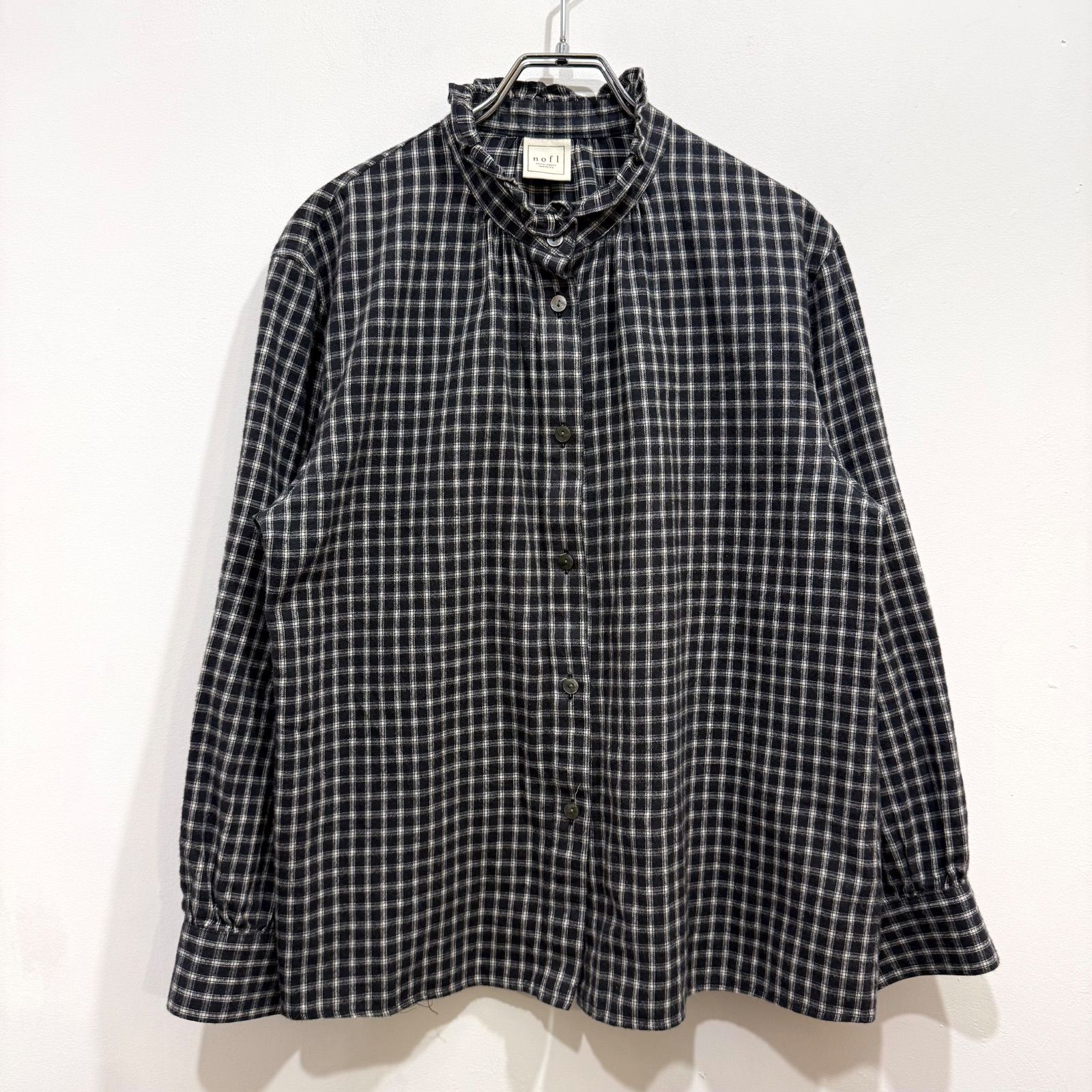 nofl ノフル コットンシャギーチェックフリルブラウス シャツ フリル襟 スタンドカラー バンドカラー【送料込み】