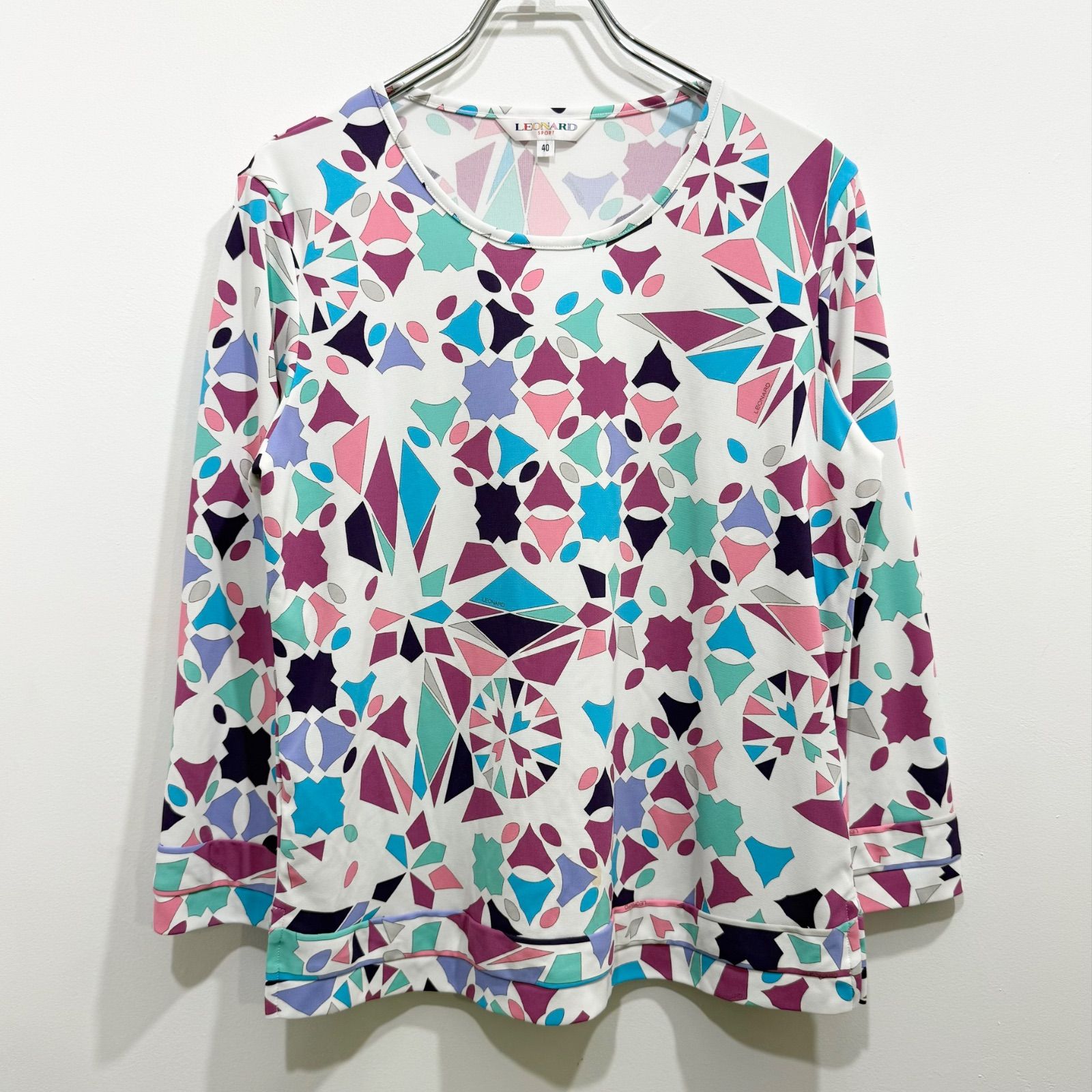 LEONARD SPORT レオナール スポーツ 幾何学模様 ジオメトリック Tシャツ トップス プルオーバー ブラウス マルチカラー 40【送料込み】