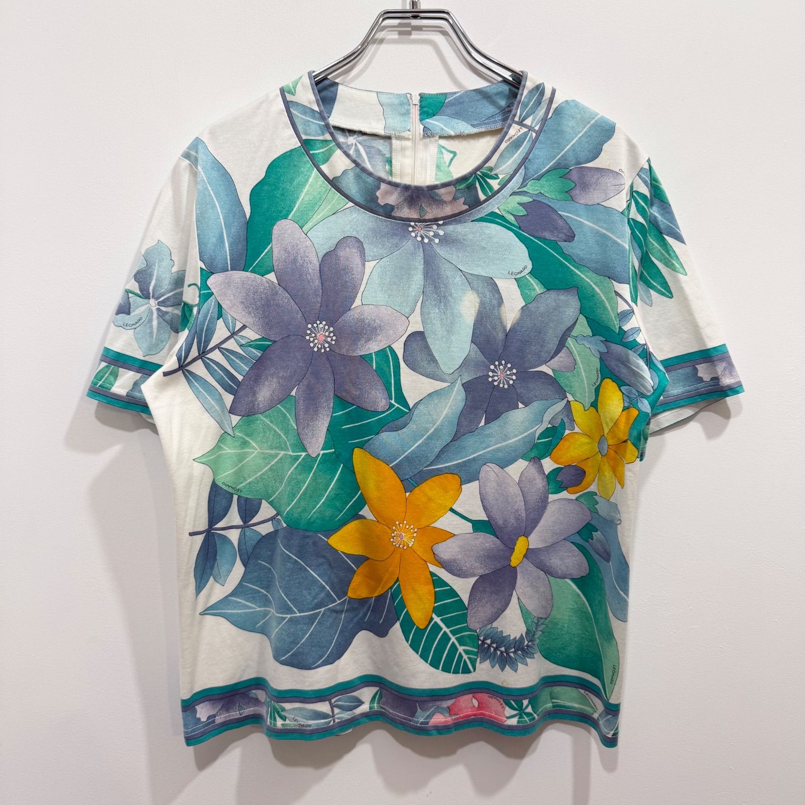 レオナール 半袖Tシャツ プルオーバー 花柄 マルチカラー 総柄 LL【送料込み】