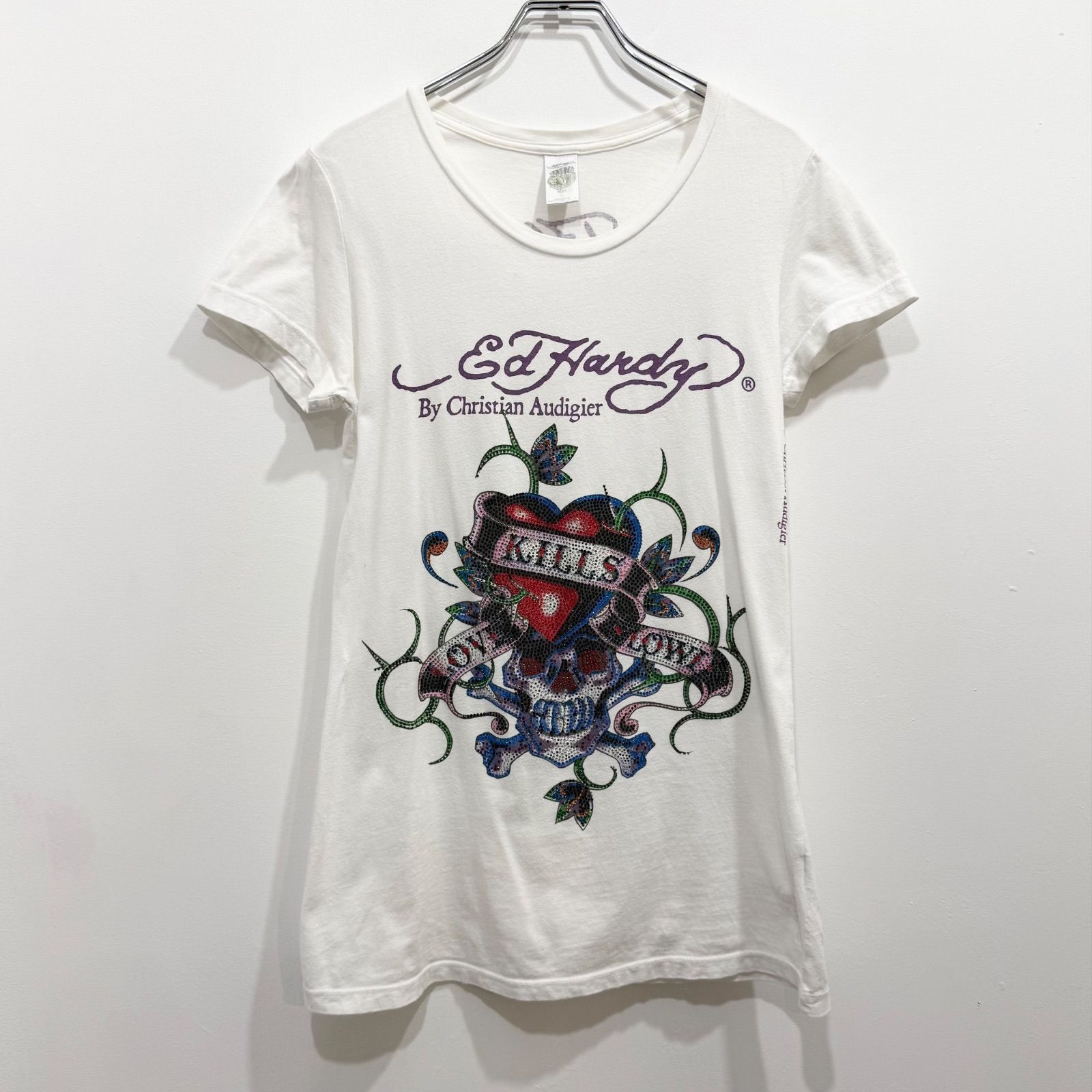 Ed Hardy by Christian Audigier クリスチャン・オードジェー エドハーディー 半袖Tシャツ ドクロ スカル ハート ラインストーン【送料込み】