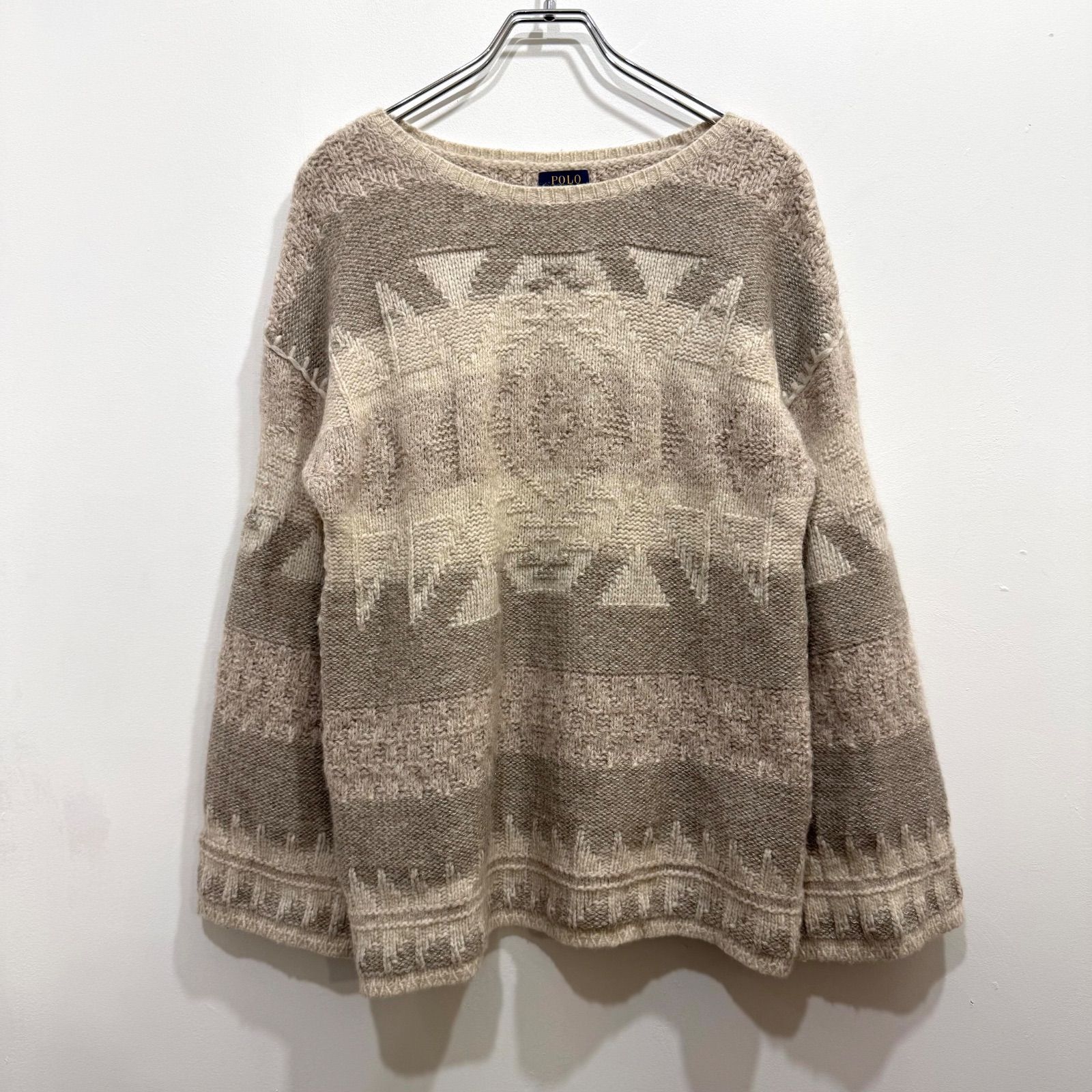 カシミヤ・アルパカ混 POLO RALPH LAUREN ポロ ラルフ ローレン ネイティブ柄 ニットセーター プルオーバー ベージュ M【送料込み】