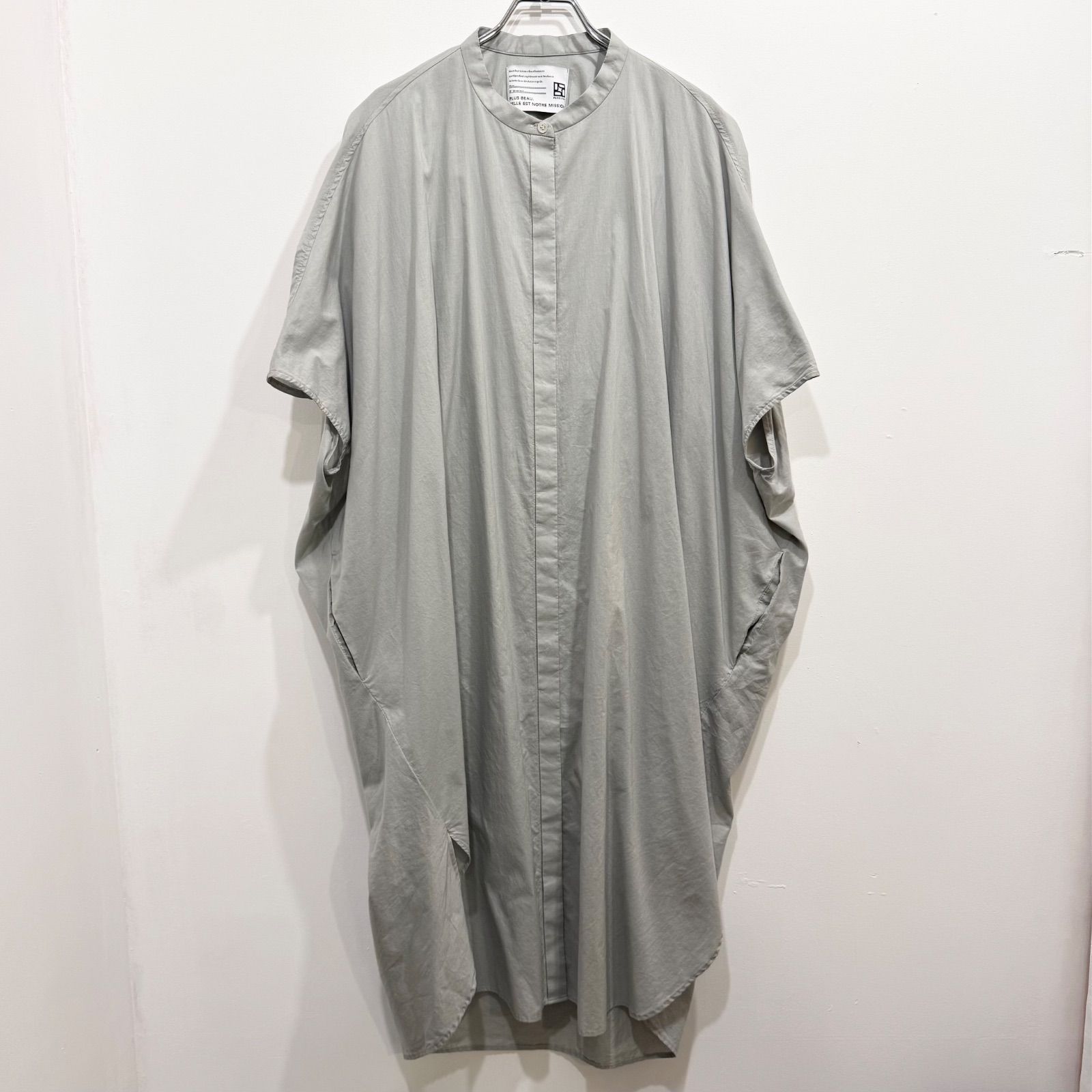 08Mab ゼロハチマブ ギャザー ノーカラー シャツワンピース コットン ホワイト【送料込み】