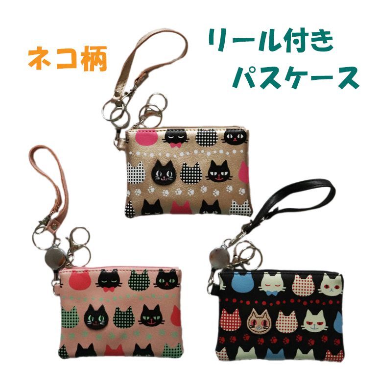 パスケース 猫 リール付き レディース おしゃれ 猫 猫柄 ねこ cat 定期入れ 通勤 通学 ねこ柄 cat柄 薄型 財布 カード入れ ICカード