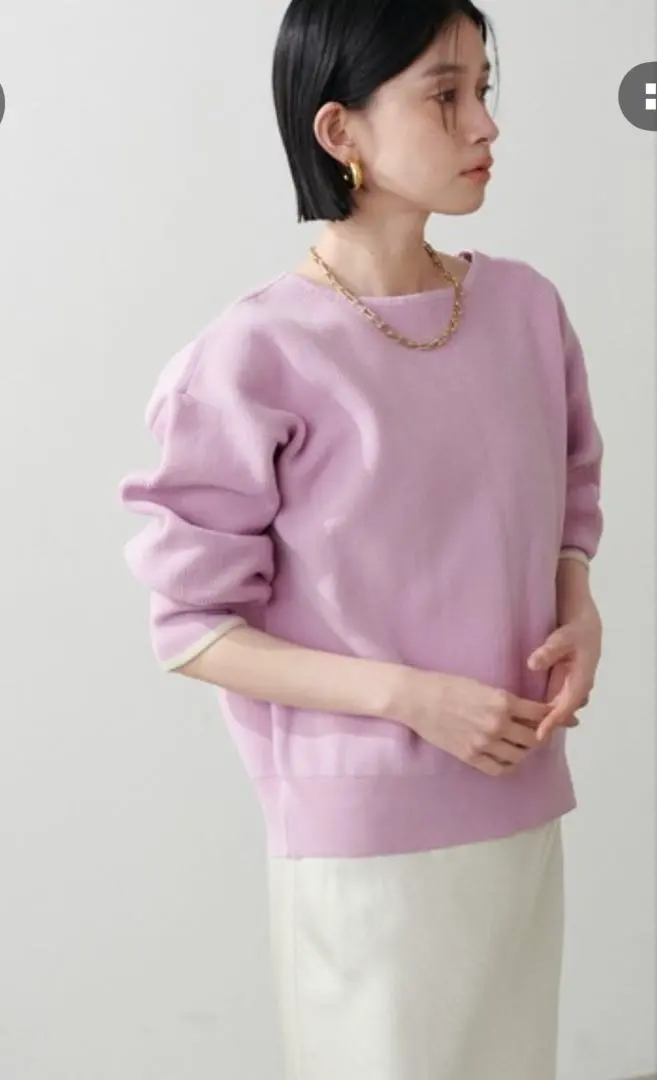 【LARUTA】袖裏配色前後2WAYポリ畦ニット ピンク ラルータ