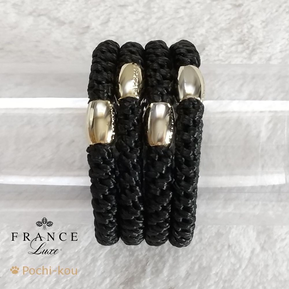 ヘアゴム France Luxe フランス ラックス L. Erickson リトルブラックポニー 4個 ブラック ゴールドビーズ 黒 大人 太い おしゃれ
