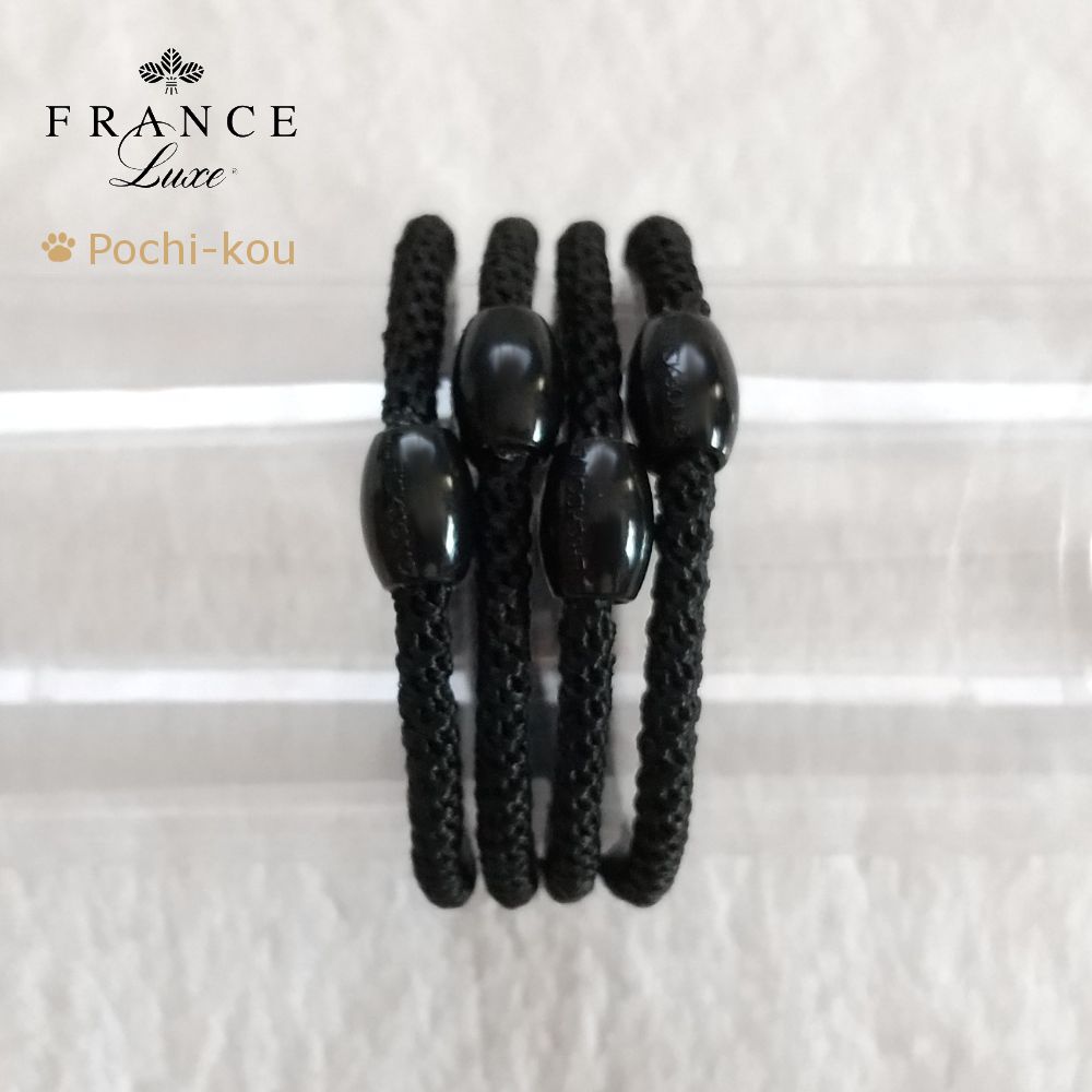 ヘアゴム France Luxe フランス ラックス L. Erickson リトルブラックポニー 4個 ブラック シルバービーズ 黒 大人 太い おしゃれ