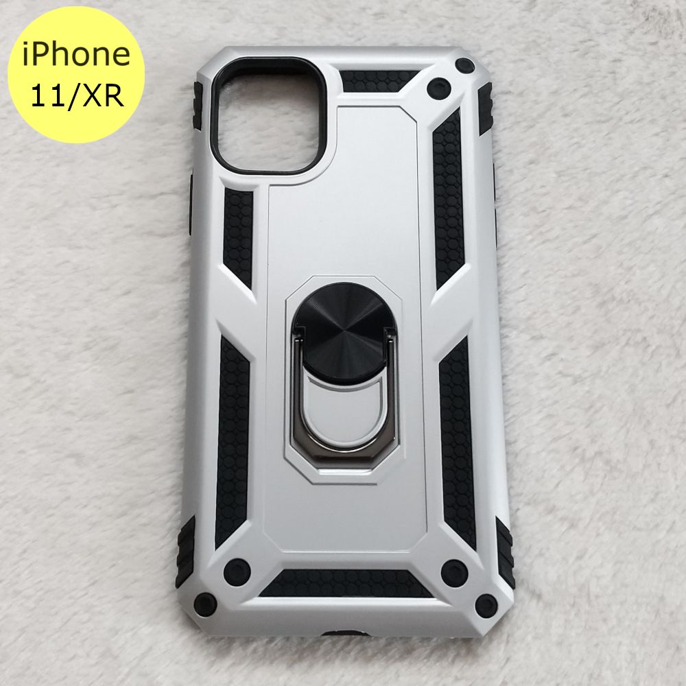 iPhoneケース 耐衝撃 衝撃吸収 リング付き iPhone 11 XR シルバー スマホ アイフォン ケース
