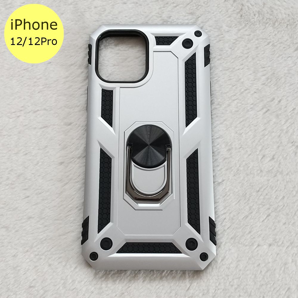 iPhoneケース 耐衝撃 衝撃吸収 リング付き iPhone 12 12Pro シルバー スマホ アイフォン ケース