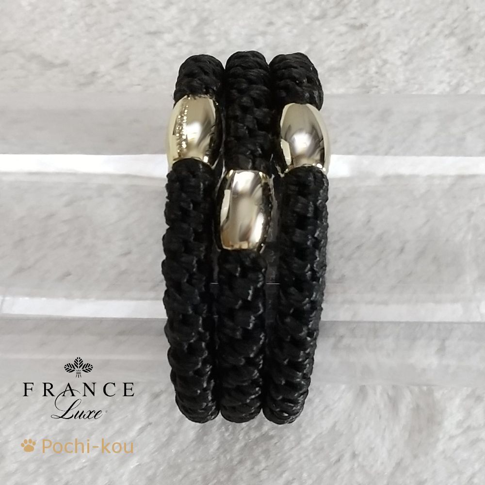 ヘアゴム France Luxe フランス ラックス L. Erickson リトルブラックポニー 3個 ブラック ゴールドビーズ 黒 大人 太い おしゃれ