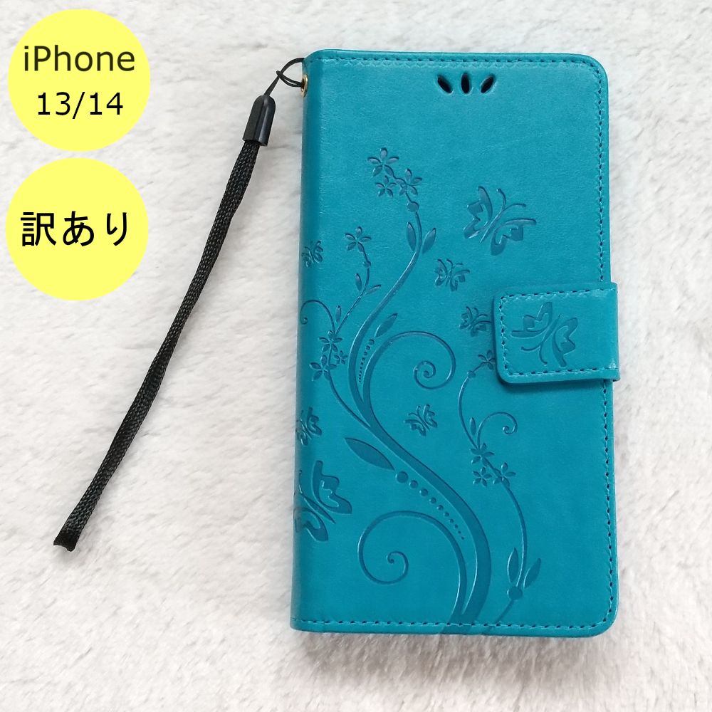 【訳アリ品】蝶 手帳型 iPhone13/14 iPhoneケース 水色 A-
