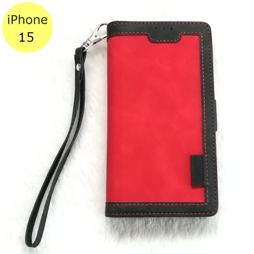 iPhoneケース レトロ 手帳型 iPhone 15 レッド スマホ アイフォン ケース