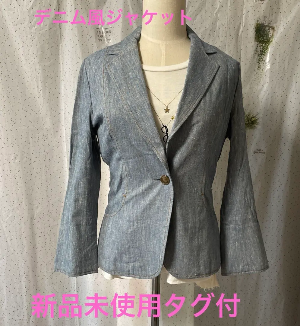 ハロウィンSALE 新品未使用タグ付きライトブルーデニム風ジャケット 11号細身