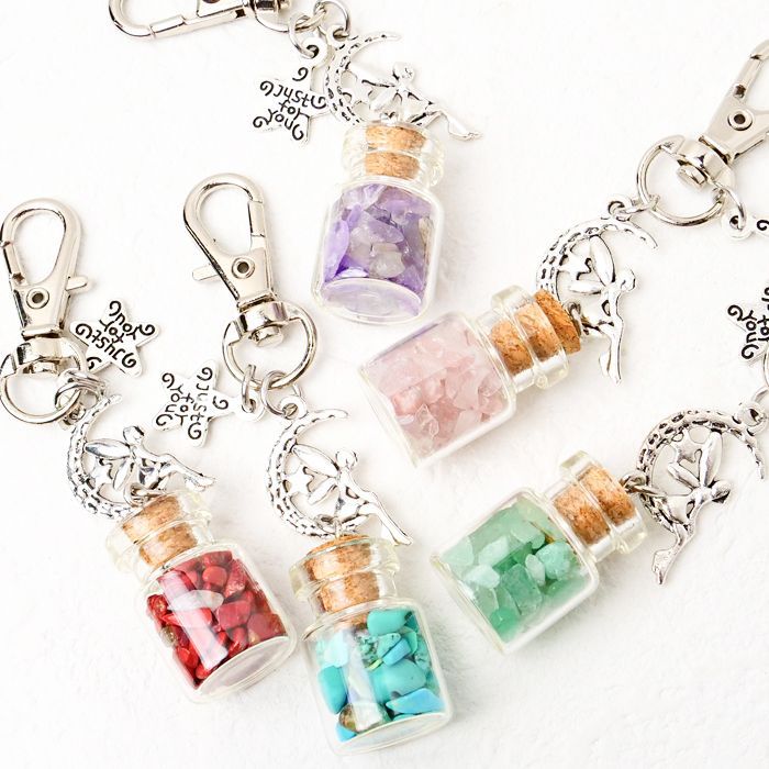 さざれ 小瓶 キーホルダー 天然石 パワーストーン コルク栓 ガラス瓶 ミニボトル フェアリー 妖精