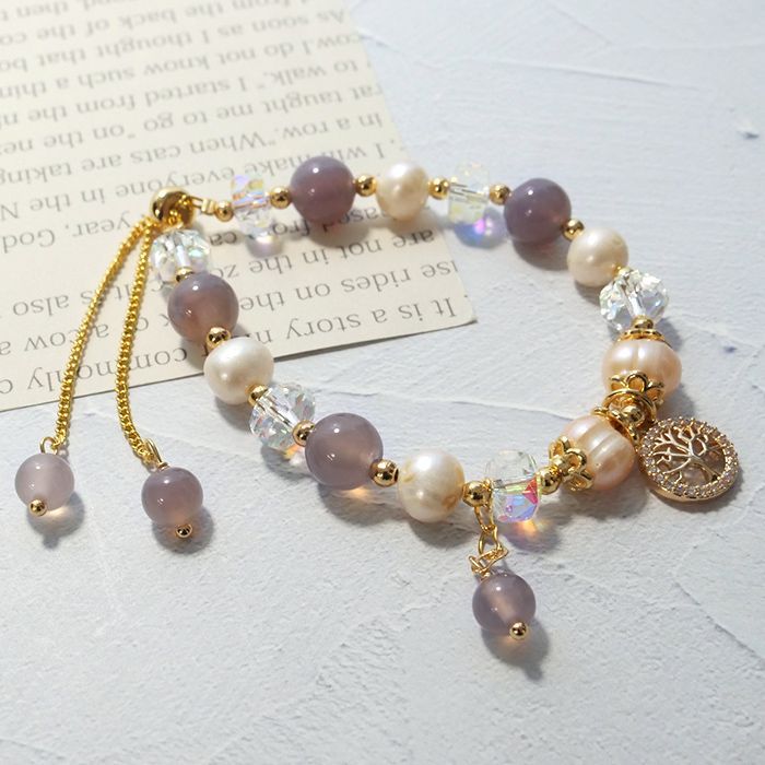 淡水パール×天然石 メノウ ツリーオブライフ ブレスレット 留め具サージカルステンレス