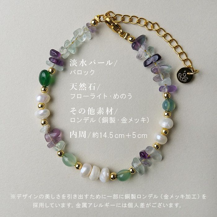 淡水パール×天然石 フローライト ブレスレット 留め具サージカルステンレス