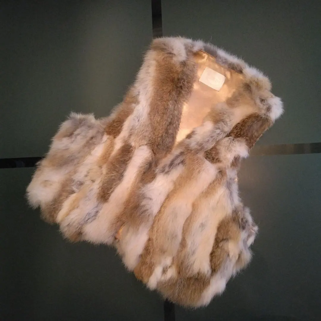 ラビット リアル ファー ベスト ジレ ブラウン系 ホワイト ミックスカラー