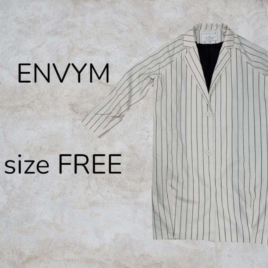 ENVYM シャツ オープンカラーシャツ ストライプ 白 黒 長袖 ロング丈