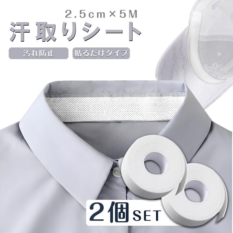 汗取りテープ 汗取りシート 汚れ防止テープ 汗ガード 汗ジミ対策 2個セット 汗止め 帽子 ワイシャツ 汚れ防止 キャップガード