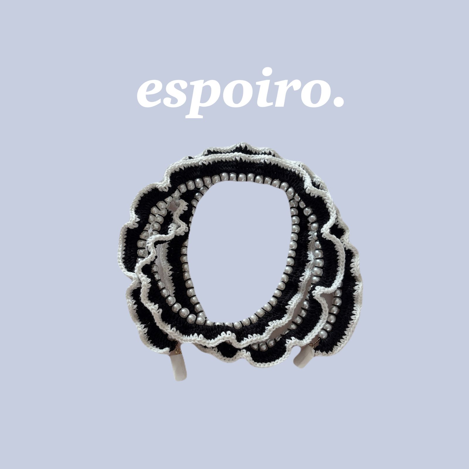【ハンドメイド・完成品】スマホストラップ スマホショルダー ショルダーベルト パール フリル crochet クロシェ 黒 白 ラメ ブラック ホワイト コットン