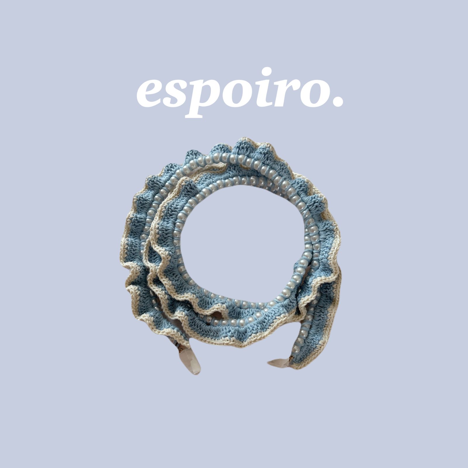 【ハンドメイド・完成品】クロシェ 水色 ブルー ホワイト スマホストラップ スマホショルダー スマホショルダーストラップ パール フリル