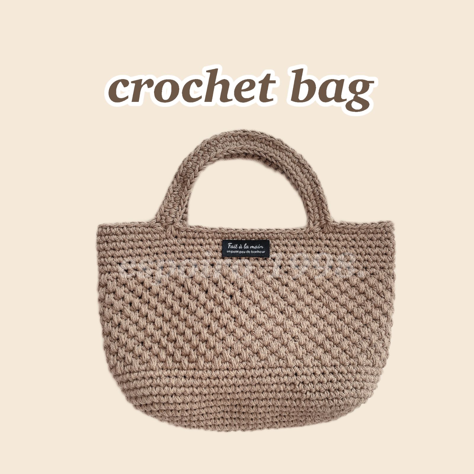 【ハンドメイド・完成品】クロシェバッグ ブラウン ベアブラウン ハンドバッグ コットンバッグ