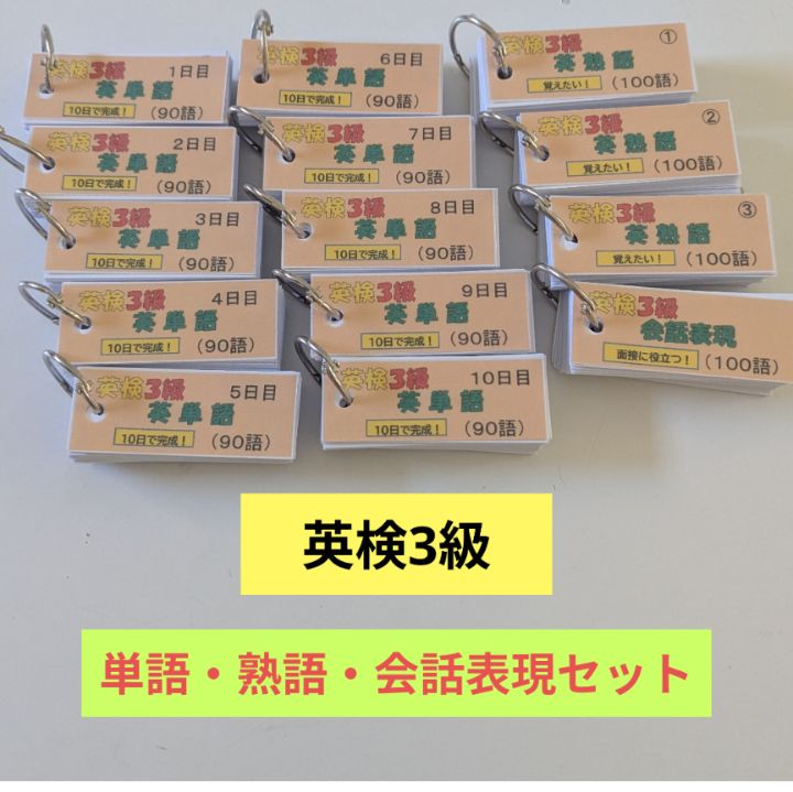 お得なセット【英検3級】単語帳 単語900語 熟語300語 会話表現100