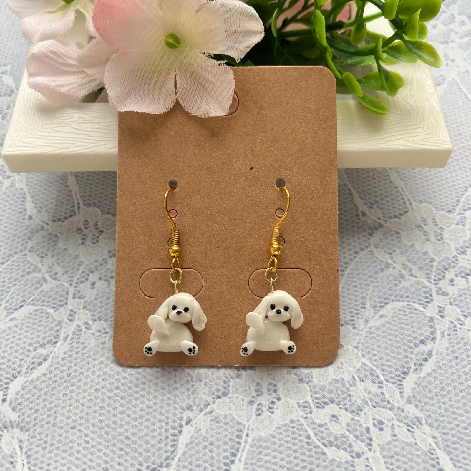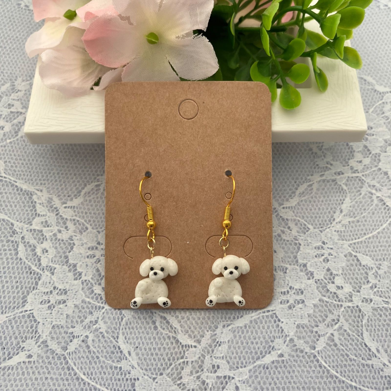 ②ふりむきマルチーズちゃん꒰ ՞•ﻌ•՞ ꒱ハンドメイドピアス