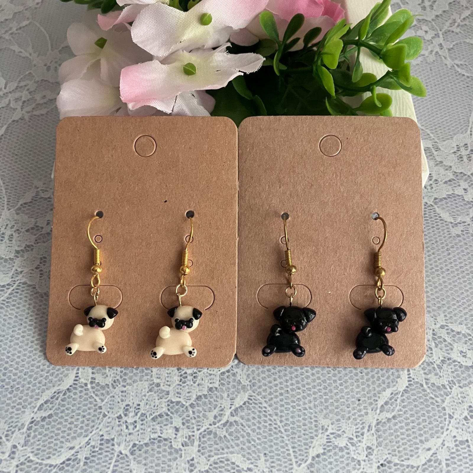 ふりむきパグちゃん꒰ ՞•ﻌ•՞ ꒱ハンドメイドピアス