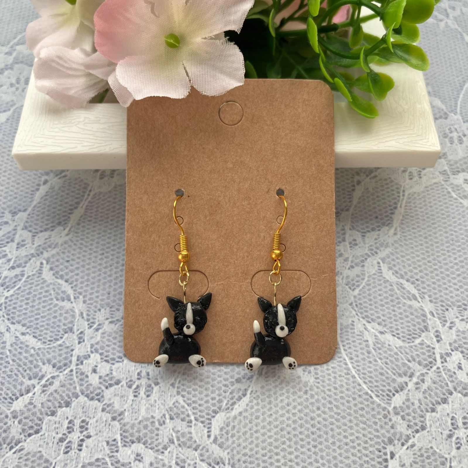 【ボーダーコリー】 犬 ハンドメイド ピアス 樹脂粘土 小ぶり