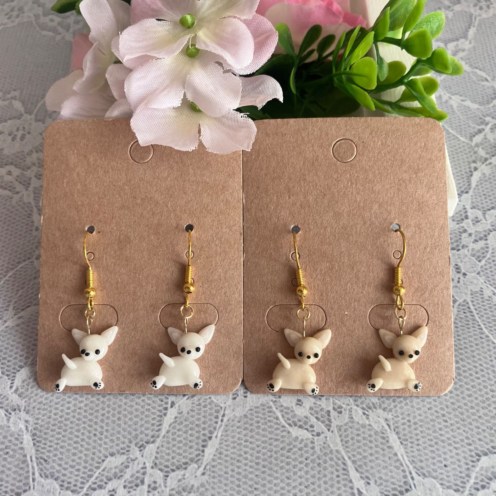 ①ふりむきチワワちゃん꒰ ՞•ﻌ•՞ ꒱ハンドメイドピアス