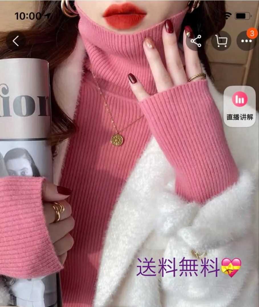 柔らか滑らか暖か素材タートルハイネックニットセーター可愛い通勤oL(ピンク)