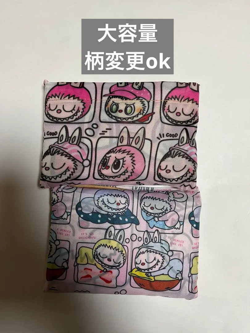 ラブブ(LABUBU)エコバッグ折りたたみ大容量2色2枚セット